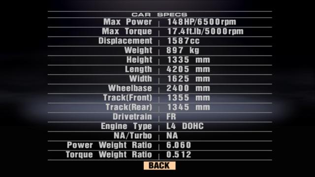 This is a custom-built AE86 owned by Initial D creator Shuichi Shigeno, with significantly beefed-up performance compared to the base model. At just 825kg it's already lighter then my fully-upgraded AE86, although with just 207hp some power upgrades will be required before it's competitive in the GT World Championship. With the credits at my disposal I am able to get it to 249hp and 800kg, along with various handling and drivetrain-related upgrades.