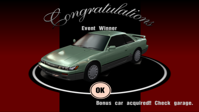 Compared to previous GT games, progress in the early game is noticeably slower - the cars available to you at the start of the game are significantly slower, payouts are much lower, and instead of handing out prize cars for winning each race as in GT2, they are awarded on a per-series basis as in GT1. (Even more so in the Japanese version, as you start the game with 1.5 million credits - as all credit amounts are multiplied by 100 in the Japanese version, this effectively represents a one-sixth reduction in your starting money, and payouts are further reduced as well).